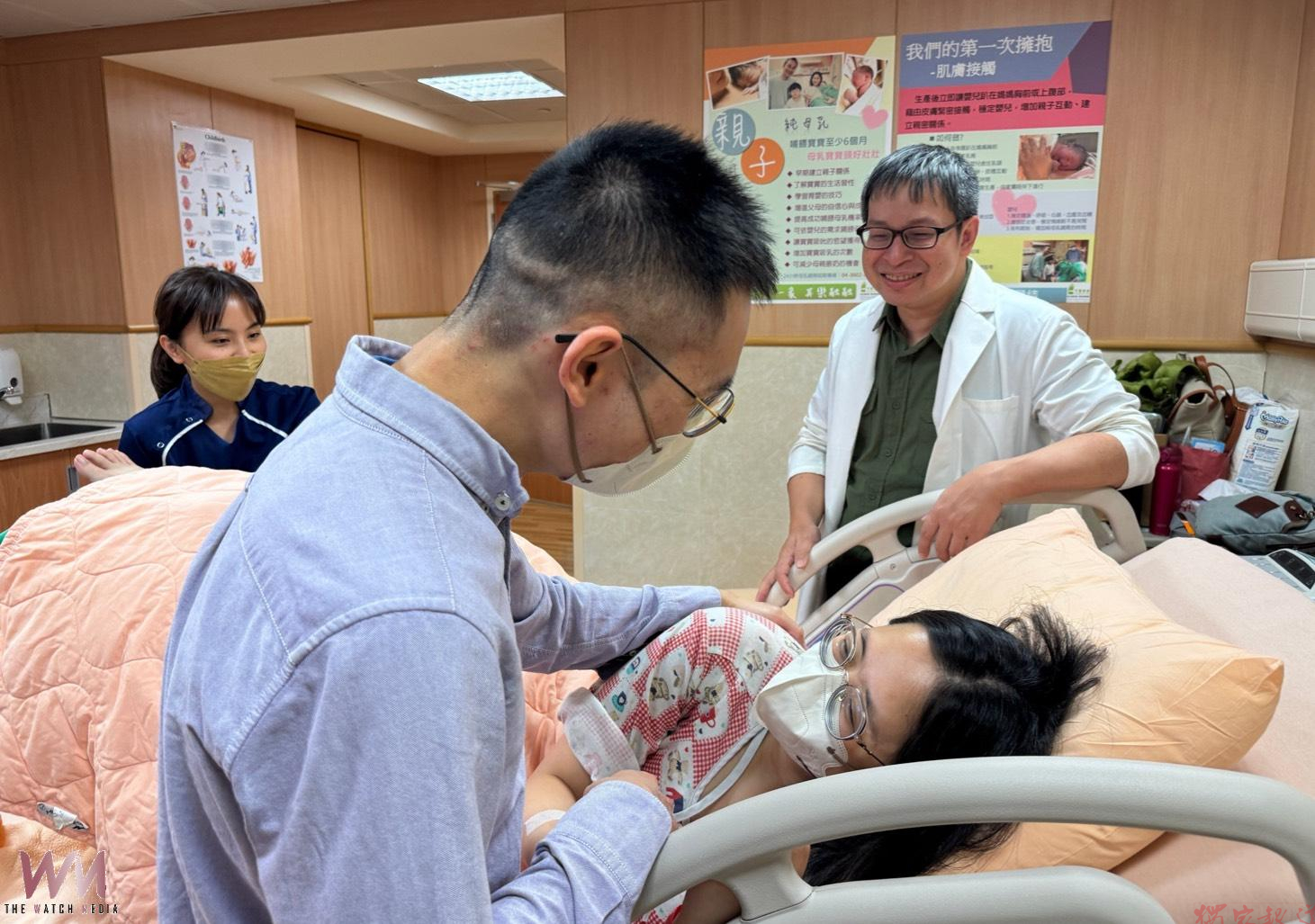 在產前準備階段,婦產科醫師蘇修緯即引導夫妻共同擬定「生產計畫書」,針對是否採行無痛分娩、延遲斷臍等醫療選項充分溝通,透過共享決策提升產婦的參與感與掌控感。同時,助產師提供產前衛教,指導會陰按摩與骨盆放鬆技巧,並教導先生在待產過程中透過按摩協助減緩不適、提升安全感。張小姐的先生表示,在助產師陪伴下,夫妻能清楚掌握每個產程階段,心情較第一胎明顯放鬆,也真正感受到自己「參與其中」,不再只是旁觀者。