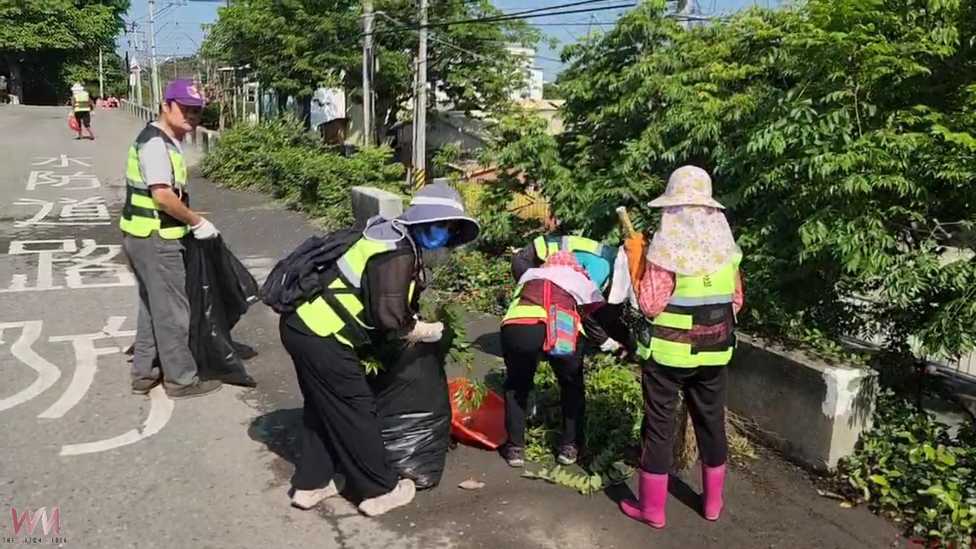 志工們手持掃把、畚箕與垃圾袋,在堤防沿線來回巡查,不放過塑膠袋、飲料瓶、餐盒等零星垃圾,也協助清理部分隱藏於草叢中的廢棄物,使原本散落垃圾的環境逐步恢復整潔。