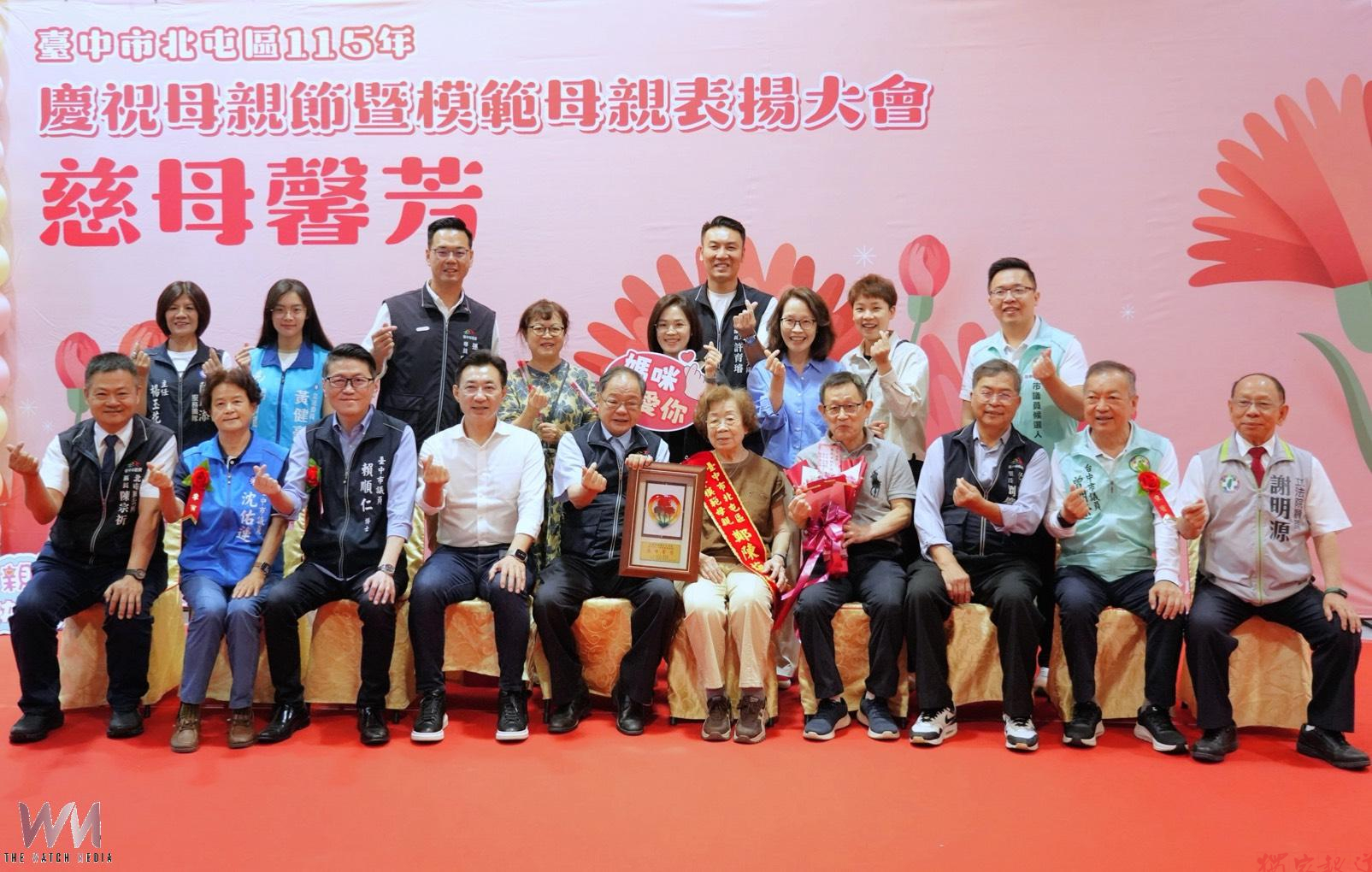 (觀傳媒中彰投新聞)【記者廖妙茜/台中報導】溫馨母親節將至,台中市北屯區公所今(26)日於公所6樓大禮堂舉辦「115年度台中市慶祝母親節暨模範母親表揚活動」,54位模範母親在子女、孫輩陪同下出席受獎並合影,感受溫馨光榮的一刻。台中市政府民政局長吳世瑋頒發「慈母馨芳」獎牌,向所有辛勞偉大的母親致上最深敬意,感謝她們長年為家庭無私奉獻,並祝福全天下媽媽母親節快樂、幸福安康。