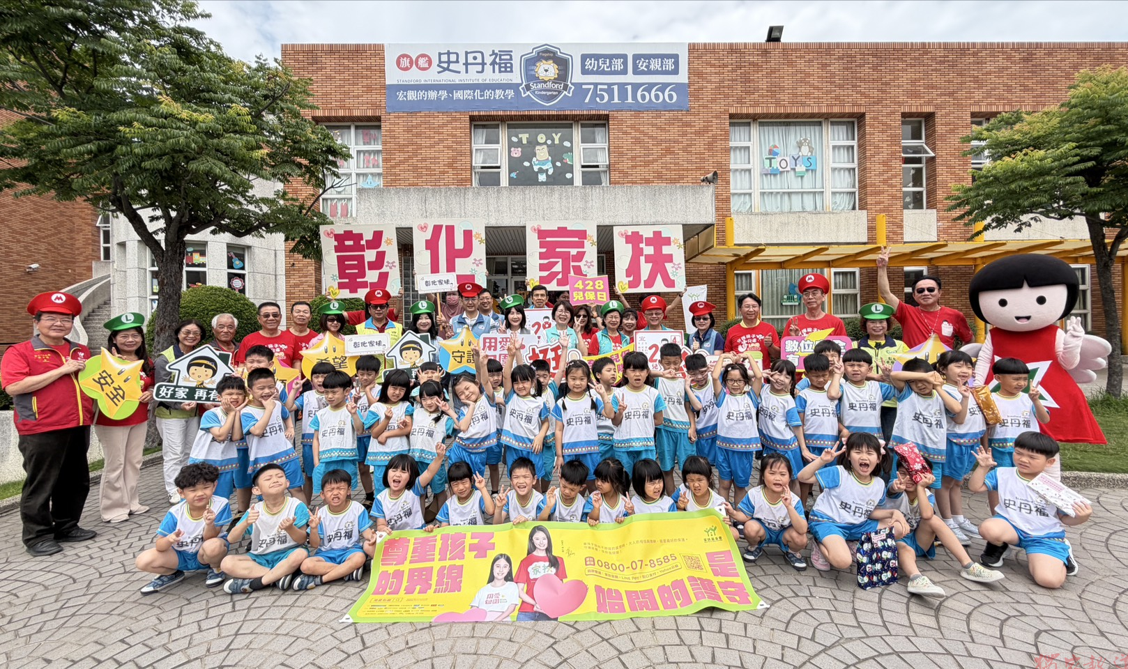 為強化幼兒自我保護能力,彰化家扶中心攜手彰化市私立旗艦史丹福幼兒園舉辦「一元復史.丹心護兒.馬上幸福」兒保宣導活動。活動由太鼓隊與舞蹈班熱鬧開場,並透過有獎徵答方式,將身體界線、性別觀念及網路安全融入互動教學,提升幼兒學習興趣。