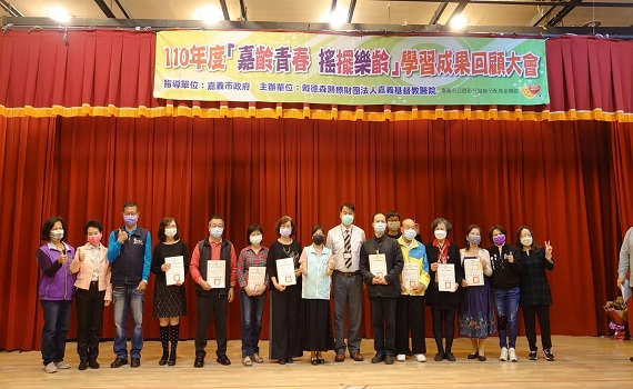 (嘉義新聞)【記者吳東林/嘉義市報導】由嘉義市政府委託戴德森醫療財團法人嘉義基督教醫院經營管理嘉義市長青園,110年度「嘉齡青春 搖擺動齢」學習成果回顧大會於嘉義市長青園演藝廳舉行。逢疫情期間,學苑學員們堅守防疫規範,珍惜當下,在長青學苑老師們整學年的全心教學投入,展出最亮麗的活力表演,為年度學習畫下完美句點。