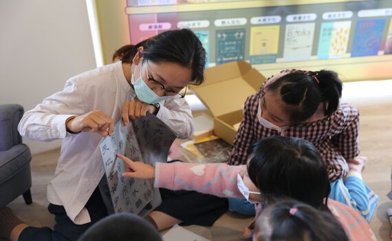 ▲與孩子互動並體驗桌上型遊戲,認識文字轉變及印刷文化。