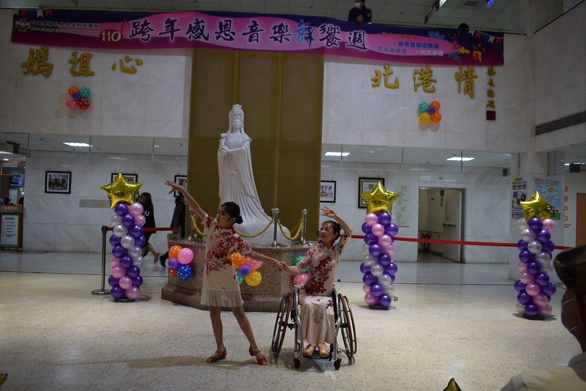 院方指出,跨年感恩音樂舞饗週,融合音樂、歌曲、舞蹈多種表演呈現,更感謝疫情期間,有能力的人出一份心力去愛心支援社會上需要幫助的人,期待有一天能復歸昔往,每一天、每一人都能享溫飽,共享溫情與繁榮。演出為:12/29(三)朝天宮國樂團精彩演奏、1/3(一)中華民國輪椅體育運動舞蹈協會(輪椅國標舞表演)、1/4(二)萊杯音樂會現場點歌、1/5閃亮樂團悠活民曲。
