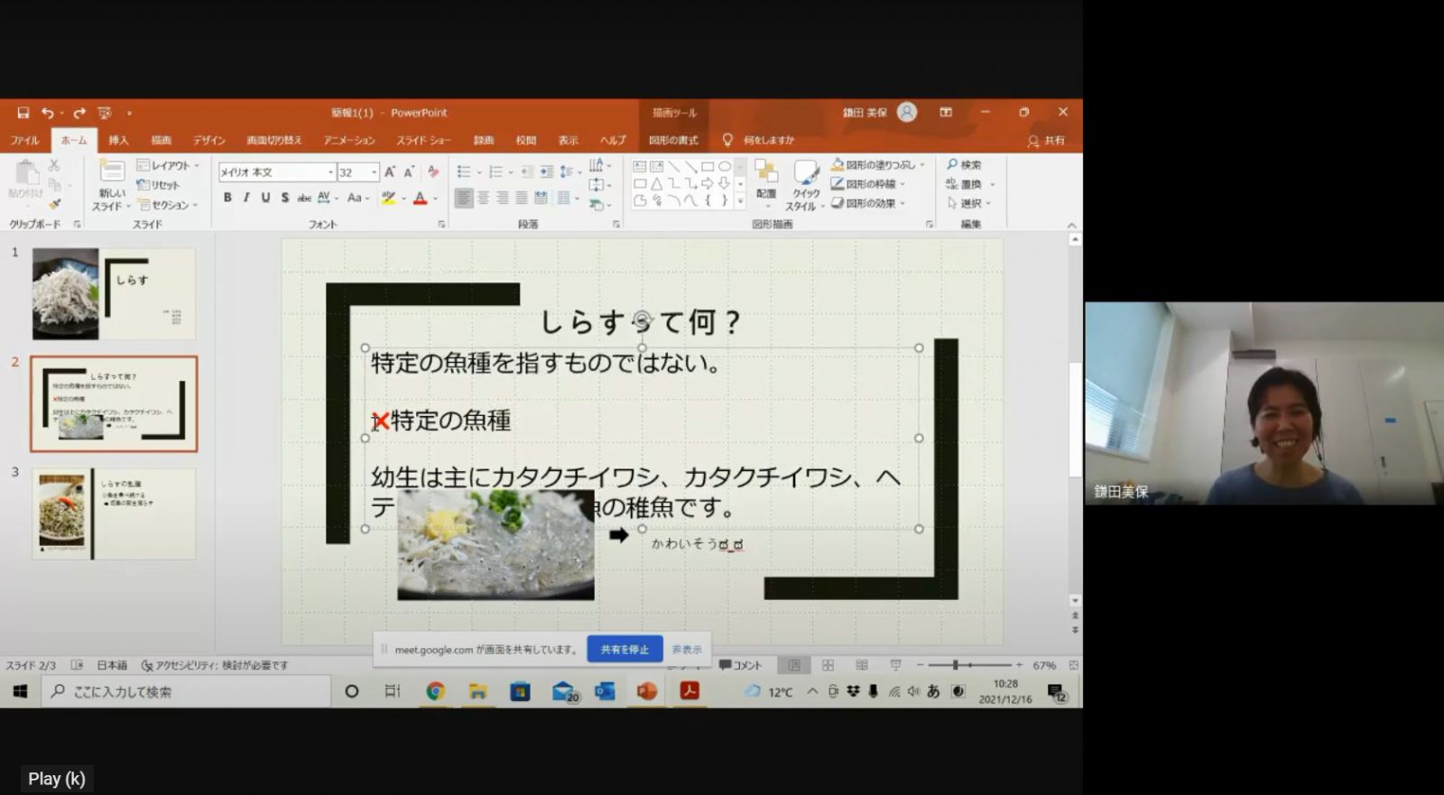 應日系助理教授簡靖倫指出,此次日語聽講課程特別與日本攝南大學合作,學生分組從SDGs17項指標中選擇一個大題目,再討論台灣的狀況,鎌田美保老師也指導學生使用日語發表,並針對學生簡報的用字與文法給予建議,幫助學生練習運用日文表達抽象理念和自身想法。