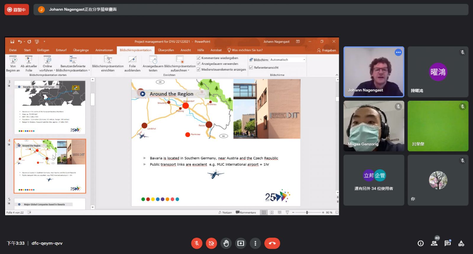 ▲大葉大學企管系邀請德國德根多夫應用科學大學Johann Nagengast教授線上演講。
