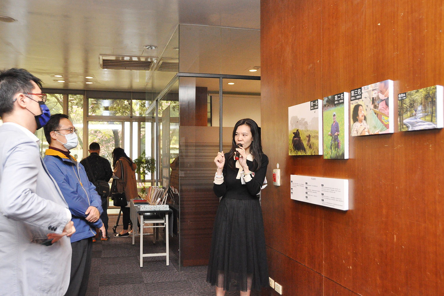▲好地方協會於明道大學承正圖書館舉辦「微笑的味道」攝影展,好地方協會楊淑玟導覽得獎作品。