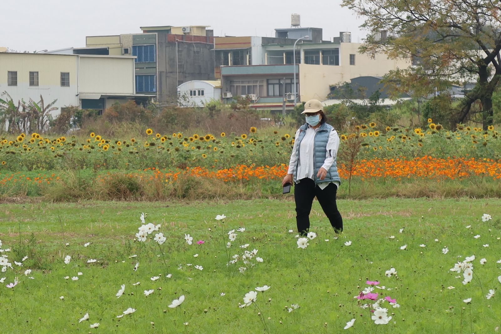 ▲彰化市公所推出了春遊賞花祕境,國道一號彰化段高速公路旁波斯菊、向日葵綻放蔚為一片燦爛花海。
