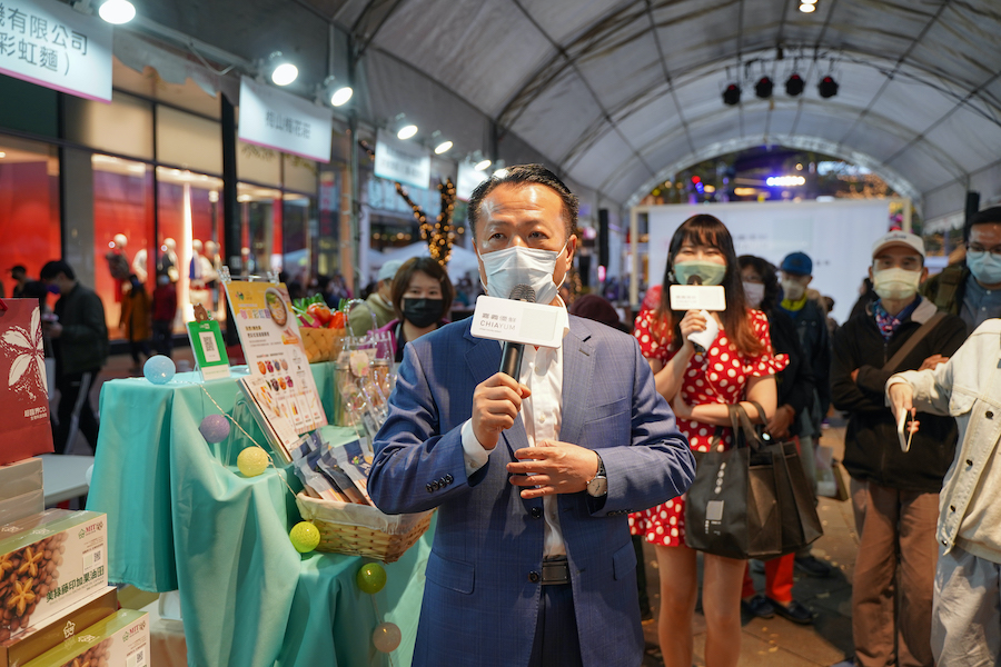 ▲翁章梁縣長領軍行銷嘉義優鮮產品與拌手禮。