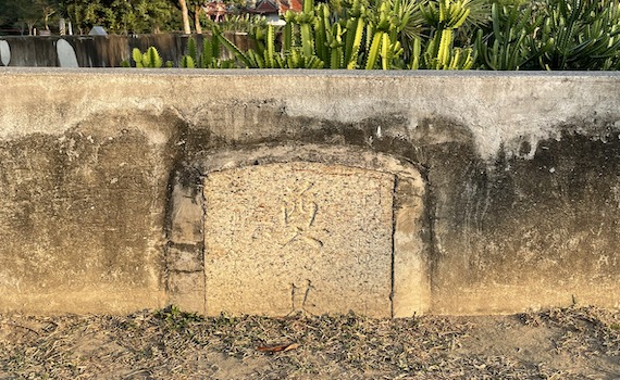 有眼尖的遊客發現,在快濾池圍牆底下,竟有一塊疑似「墓碑」的石碑嵌在其中,向服務人員詢問後才得知,原來就是傳統習俗中,建築要開工時,最先安置用於祈求工程平安順利的「奠基石」。