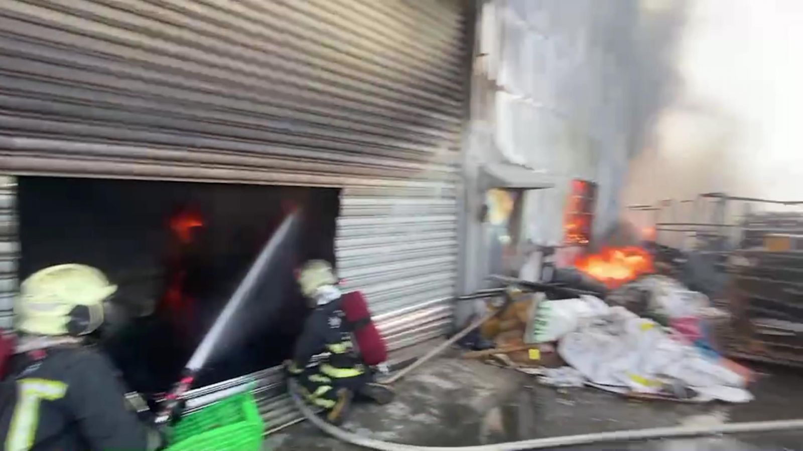 ▲布料倉庫面積廣達120坪,消防人員到場已陷入一片火海,黑色濃煙直竄天際、火舌不斷從倉庫內冒出,鐵皮屋迅速燒熔塌陷。