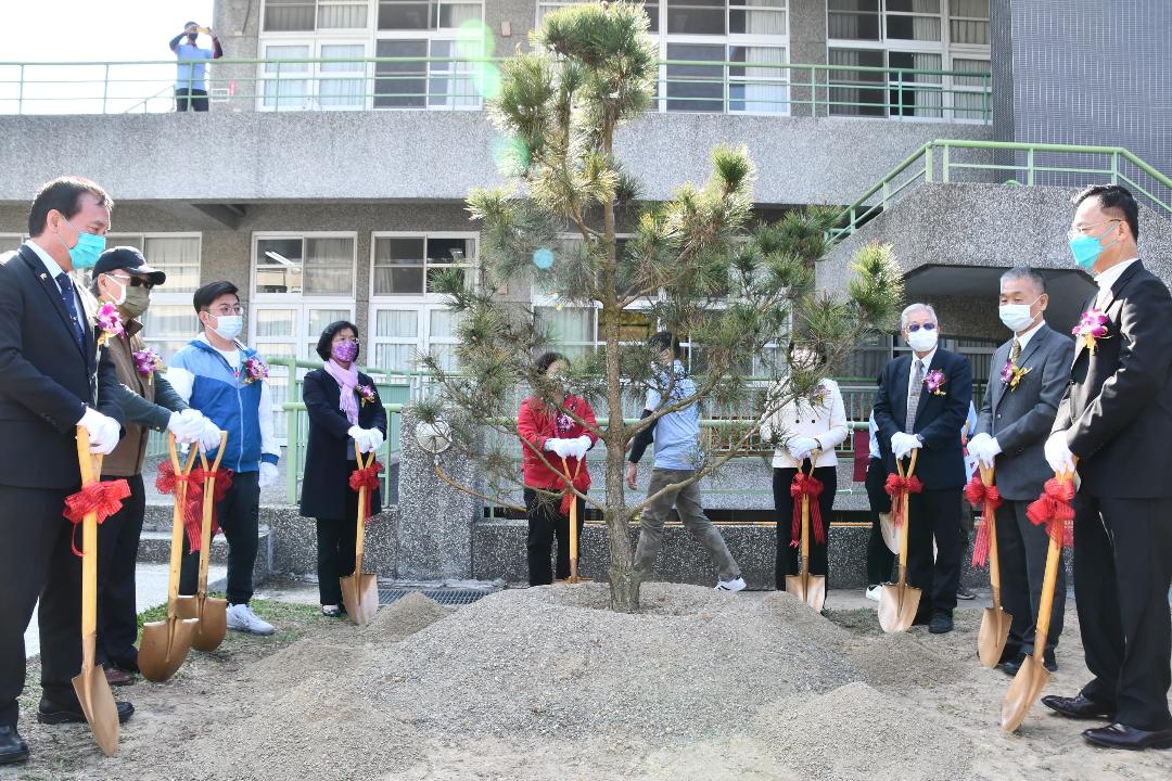 ▲彰化高中創校80年,畢業校友特別捐贈8棵黑松,並選在今(11)日11點11分種下。