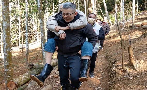 警方受理家屬報案後,立即調閱童男住處附近路口監視器,均無影像紀錄,研判人走到市區的機率不大,最有可能就是住處附近的淺山。枇杷里長潘鐵國則是與社區守望相助隊員連續兩天在「哲學步道」後方山區搜尋,歷時二天,終於在13日中午在一片竹林內將人找到,由於二天沒有吃喝,老翁虛弱倒臥一旁,身體也有多處輕微擦挫傷,所幸意識清楚,由救援人員輪流背負下山與家人團聚,家人則是感謝警方及民眾的協尋,尤其天寒地凍,如果再晚一點,後果可能不堪設想。