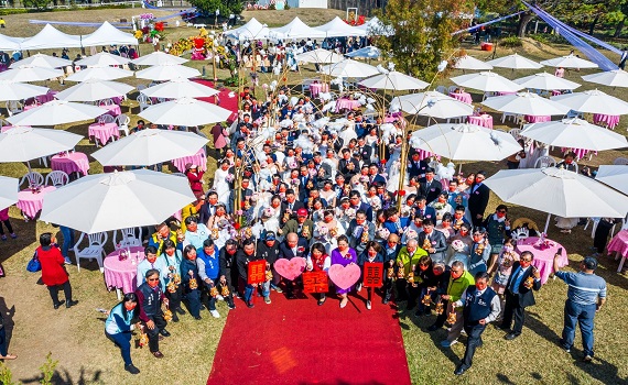 (嘉義新聞)【記者吳東林/嘉義市報導】「2022愛在我嘉 幸福成家」嘉義市第40屆市民集團結婚,16日上午於「森林之歌」舉行婚禮,共有46對新人參加,由嘉義市市長黃敏惠擔任證婚人、嘉義市議會議長莊豐安擔任主婚人,嘉義市姊妹市新竹市副市長沈慧虹擔任介紹人。漂亮又帥氣的新人們在眾人的祝福之下,開心步紅毯,氣氛甜蜜又溫馨。