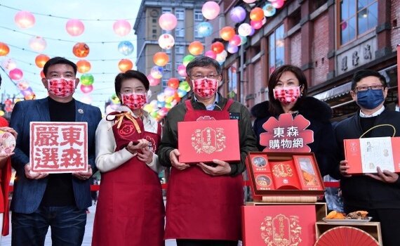 (台北新聞)【記者潘明賜/台北報導】新春好運到,2022台北年貨大街開跑囉。台北市長柯文哲、副市長黃珊珊與市府吉祥物熊讚,今(21)日聯袂到迪化街出席東森購物電視快閃戶外直播特賣會,一同向螢幕機前的朋友推銷台北最好吃又實在的年貨禮盒,現場熱鬧滾滾。