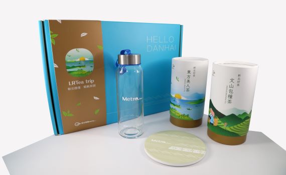 此外,繼去年淡海輕軌首度推出「淡海名物寶盒」,一次囊括了五種淡水好物受到眾多好評,今年春節,淡海輕軌接力推出「淡海名物寶盒第二波–輕軌茶旅」茶葉禮盒,不但選用了大淡水地區野放的冠軍茶「東方美人茶」,更同時選用新北茶鄉坪林的「文山包種茶」,一次擁有新北兩款好茶,享受一趟充滿茶香的「輕軌茶旅」;同時搭配新北鶯歌製造的吸水杯墊及台灣製造的玻璃隨身瓶,無論送禮自用都非常的適合。