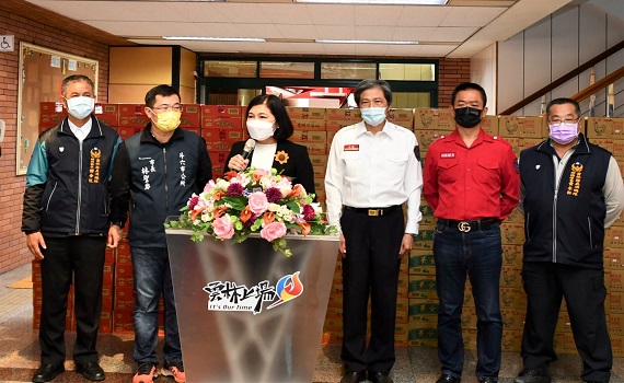 ▲縣長張麗善致贈辛苦執勤的打火弟兄加菜金。