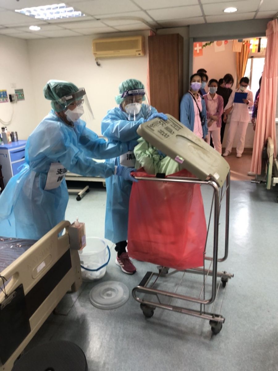 ▲藉由此次的演練及過往照服員染疫經驗,持續強化處理過程,能迅速有效且臨危不亂的執行第一線防疫照護工作。