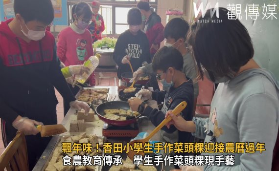 香田國小推廣食農教育有成,儘管現在是寒假,但為了豐富學生的學習,學校安排了各式各樣的營隊,學生仍然每天到校;校長鄭培華說,這次製作菜頭粿活動,香田的孩子個個學以致用,他們大早就到生態農場「拔蘿蔔」,從清洗、削皮、刨絲、炒料到磨米,都是自己做。