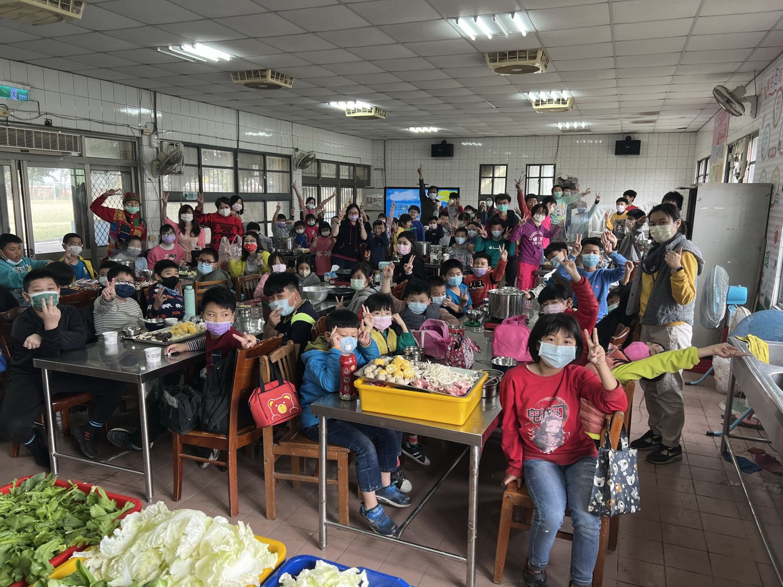 ▲全校師生圍爐一起吃菜頭粿,享受準備過年的歡樂,也祝福大家未來都能有個好彩頭。