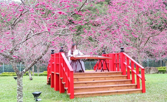 ▲與會人士一起以詩歌讚美櫻花並對櫻彈琴。