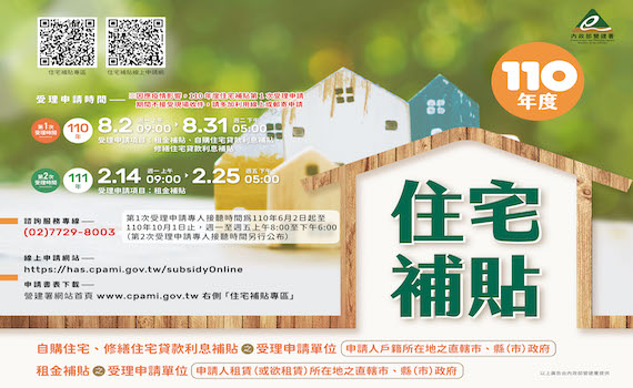 縣政府表示,「租金補貼」是為了協助無力購屋的家庭減輕租屋負擔,內政部營建署今年度依地區、家庭成員人數及是否具備經濟或社會弱勢身分等條件,將本縣租金補貼調整為每月2000元至3600元,補貼期均為1年(12期)。