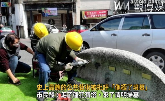 影/史上最醜的公共藝術被批評「像極了墳墓」 彰化市公所緊急打掉「墓碑」