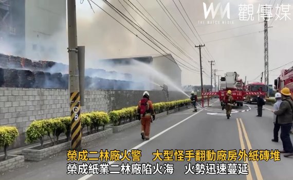彰化縣二林鎮上市公司榮成紙業廠房,今(15) 日下午3許傳出發生火警,放置廠房外紙磚堆突然起火燃燒,受風勢吹拂延燒迅速,所幸消防人員及時趕抵,佈水線阻絕火勢延燒,火警並未影響廠內。