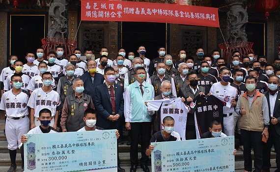 (嘉義新聞)〔記者郭政隆/嘉義市報導〕國立嘉義高中於日據時期為臺南州立嘉義中學校,並於1930年創立棒球隊KACHU(嘉中),曾於1937年、1939年代表台灣進軍日本甲子園,有著輝煌的棒球歷史,嘉邑城隍廟、順億關係企業及新任嘉義高中棒球隊後援會為支持嘉義在地棒球運動,讓運動選手有良好的訓練與學習環境,2/16日聯合捐款100萬元以提升棒球隊訓練設備及環境。