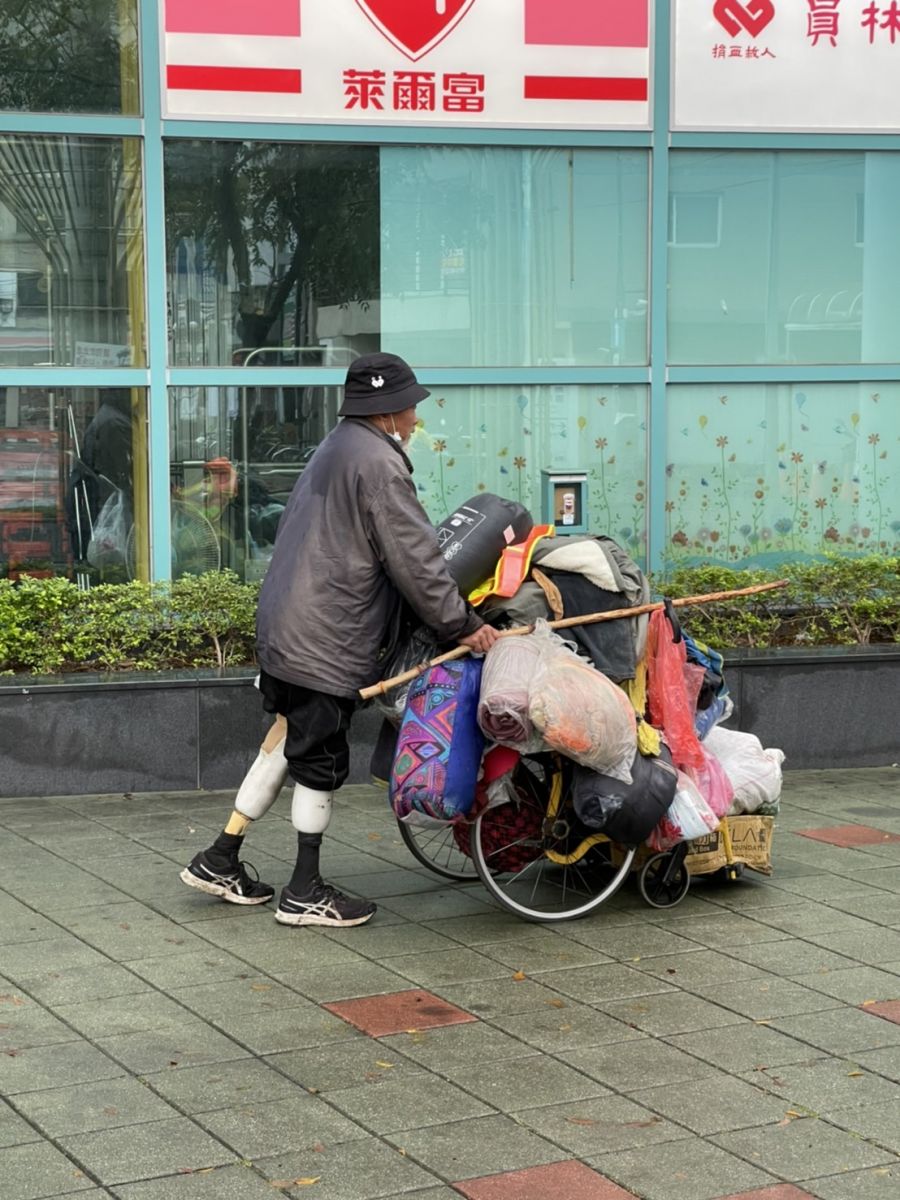 ▲台灣民眾黨田尾區副主任張勝彬在員林火車站看到一名行動不便的街友,立刻主動表示自己願意「宅急便」送燒酒雞。