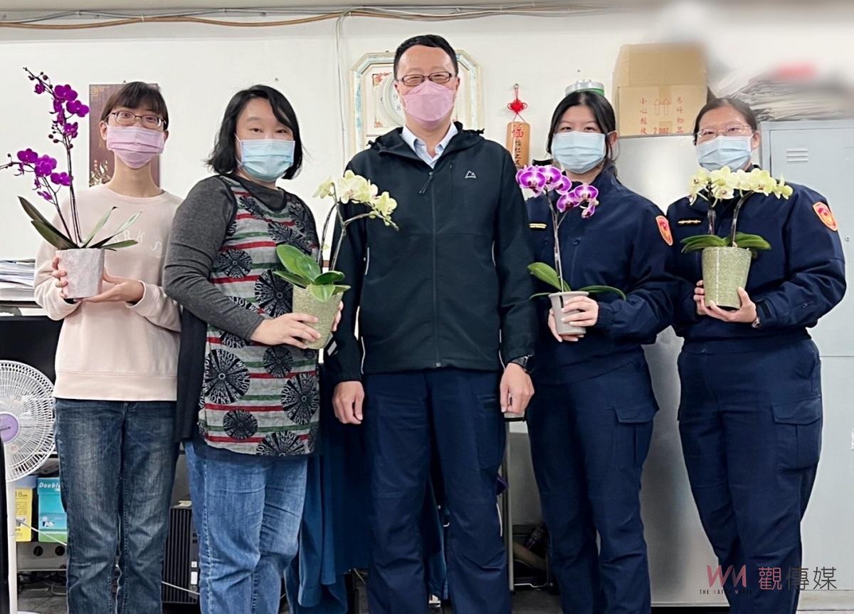 (雲林新聞)【記者洪佳伶/雲林報導】迎接三八婦女節,北港警分局分局長蔡培元提早於今(7)日慶祝這美麗的節日,一早親自走訪各單位,為女同事們送上小驚喜。今年有別於往年的鮮花、巧克力,特別選擇贈送落地型的蘭花盆栽、咖啡向女性同仁送上祝福與謝意,既能與分局女性同仁們一同分享專屬於她們的佳節喜悅,又兼顧環保及環境美化。