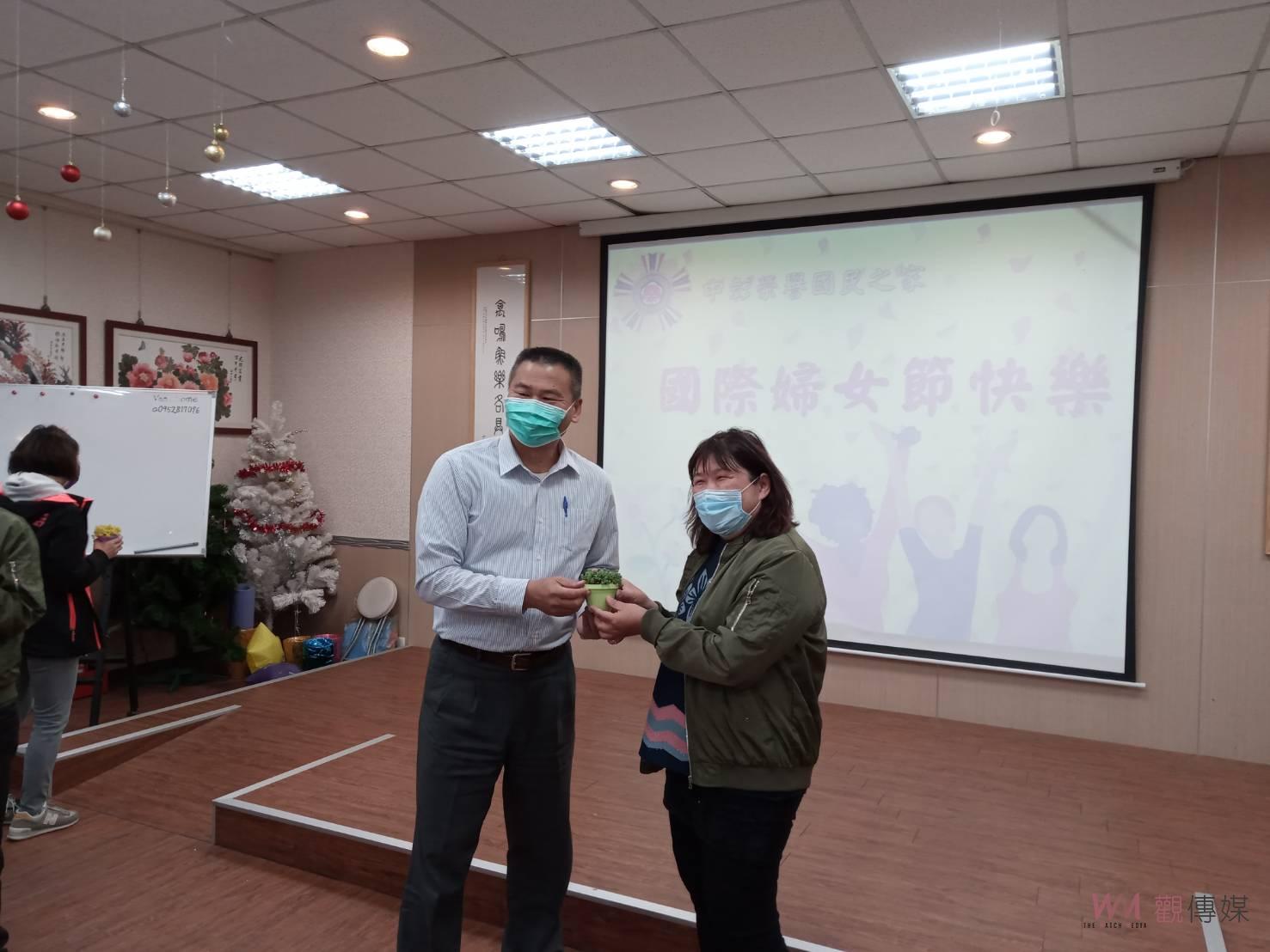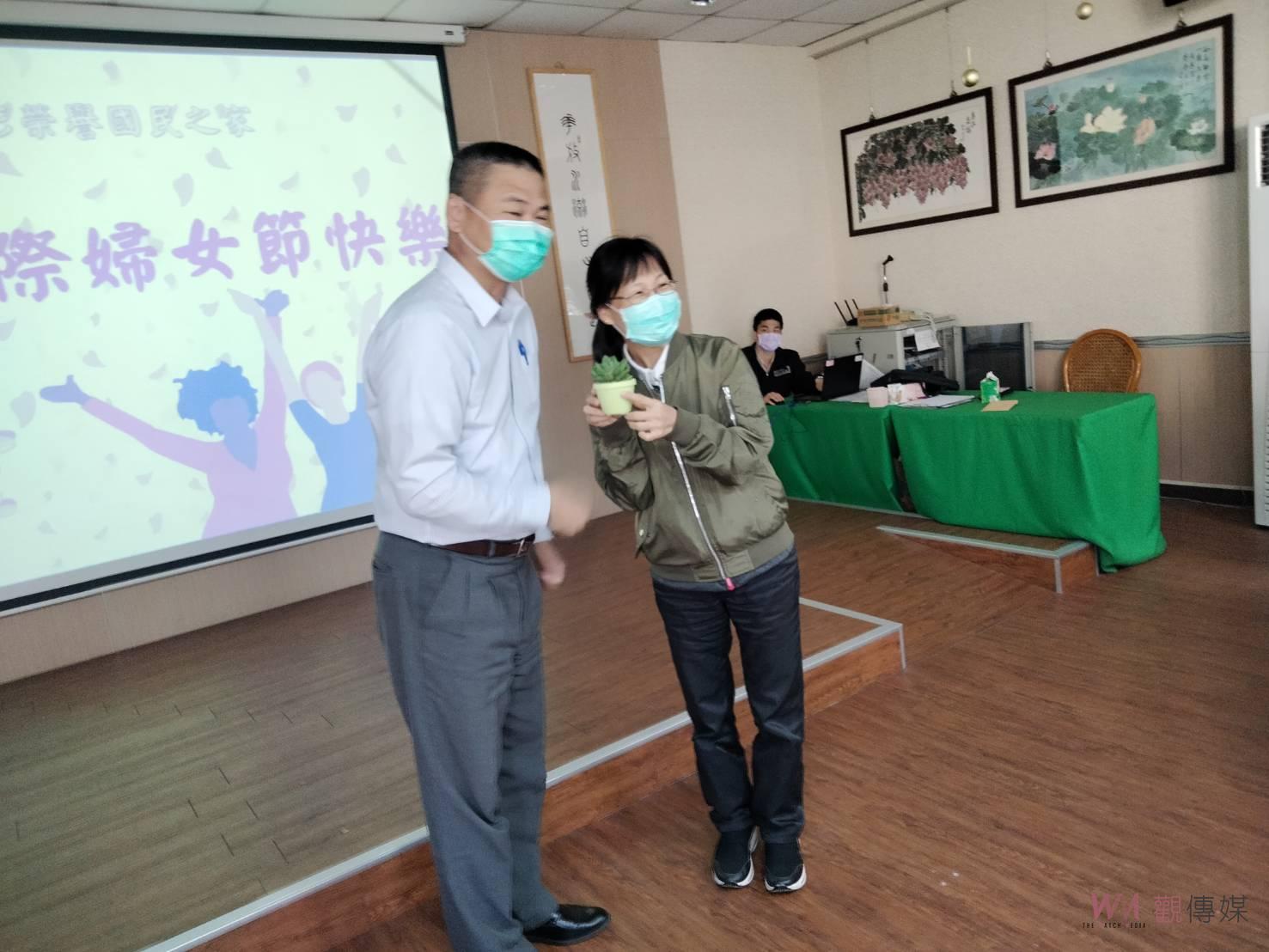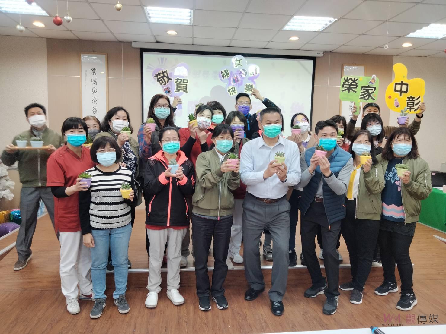 現在的女性往往身兼工作與家庭,慶祝38婦女節,中彰榮家特別準備「療癒系多肉植物」,由家主任李維安致贈女性同仁及住民,慰勉她們在工作崗位上的付出與辛勞,並期許她們在工作上能以更貼心的服務來照顧榮家的長輩,並藉由多肉植物來療癒她們工作及家庭的壞心情,活動場面格外的溫馨喜樂。
