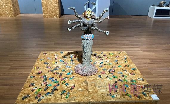 虎科大藝術中心主任王文瑛指出,本次展出作品以立體雕塑為主,亦有精彩的平面繪畫,戴澤羽的創作體現出其對自然與社會議題的關切,同時保有童趣及對環境的關懷。蔣嘉惠的作品在人物的表情及動態的刻畫上富有陶藝的拙趣,透過低彩度的色調,傳遞出神秘孤獨及其內在深刻的糾結感。
