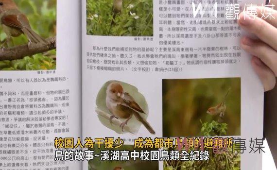 公民科老師陳政芳帶領師生團隊,費時近3年時間,捕捉上千張校園內鳥兒英姿,從中精挑細選40張,加上在地故事、學生手繪插圖,並取得ISBN國際標準書號出版;除了有黑翅鳶、鳳頭蒼鷹、紅隼和彩鷸等鳥內身影,也有令人驚豔的白喉文鳥、野鴝及受傷的虎鶇等蹤跡,十分難能可貴。