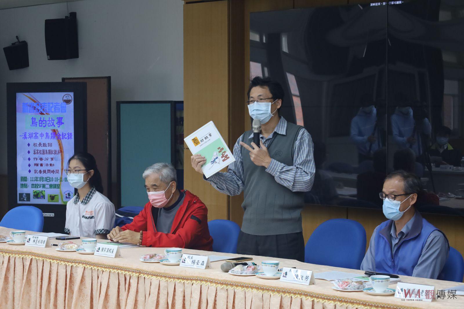 ▲國立溪湖高中發表由學校師生聯手編輯記錄的新書《鳥的故事》。