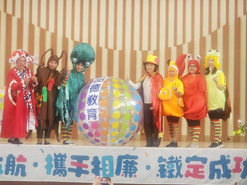 ▲嘉義地檢署張曉雯檢察長(右4)巧扮智者傳達乾淨政府。