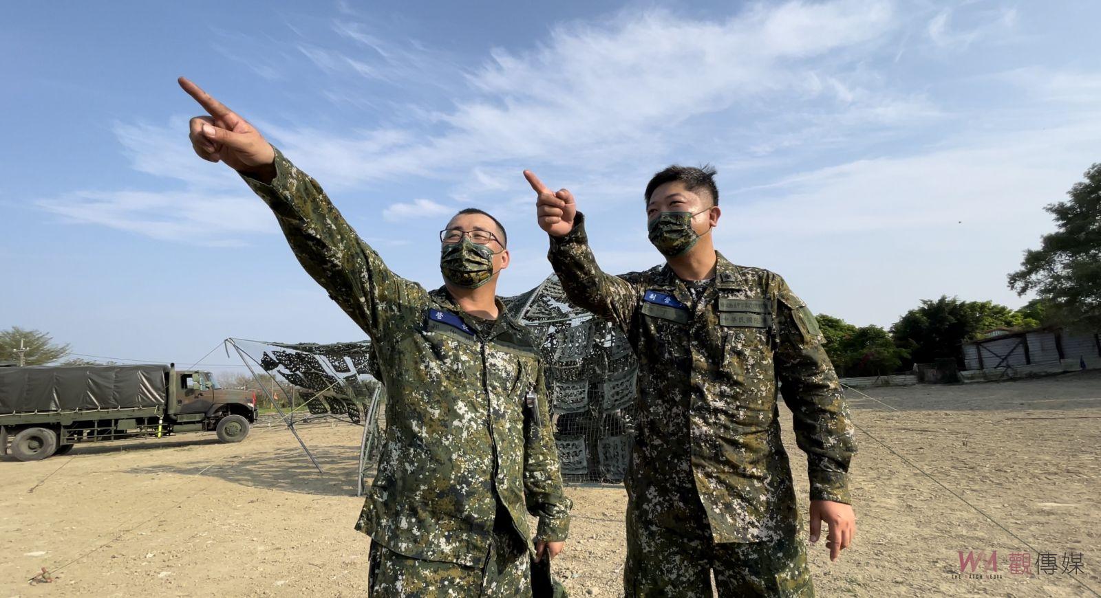 ▲203旅砲兵營長郭仲川中校(左)與召員副營長宋子帆少校一同視察砲陣地。