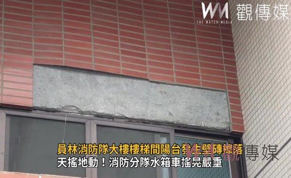 彰化縣員林消防隊的二樓外牆磁磚也被地震震落在陽台,幸好磁磚掉落未傷到人,消防局第二大隊大隊長葉明波表示,由於員林消防隊已是約30年的建築,外牆磁磚可能因冷漲冷縮加上地震才會震落,磁磚掉落面積約一點五平方公尺,幸好人員均無恙,將會報修。