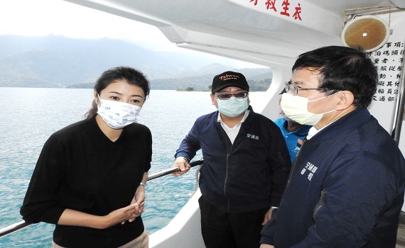 王部長指出,南投縣觀光產業發展及交通安全便捷的精進,在縣長林明溱多年來努力推動下成效卓著,他這次到日月潭聽到了遊艇公會反映的船舶電動化需求、缺乏售票既遊客服務據點及內陸船舶檢驗耗時費高的心聲,除了核定6,200萬元,縣府僅需自籌520萬元,餘由交通部補助的日月潭遊艇電子票證推動計畫,也請日管處協助在中興停車場覓得適當基地做為遊艇售票及遊客中心,另外,船舶檢驗也依內陸湖泊船艇的標準,以一天的耐航測試取代過去動輒3天的檢驗,另檢驗費用也會從現行8萬元調降為2到3萬元。