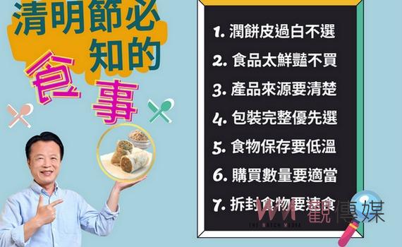嘉義縣重視清明節期間民眾的食品安全,縣長翁章梁與衛生局長趙紋華提醒民眾加強衛生觀念,說明挑選潤餅皮及其餡料有撇步,例如潤餅皮過白不要選、食品太鮮豔不要選、產品來源清楚、包裝完整優先選、食物保存要低溫、購買數量要適當及拆封食物要速食。