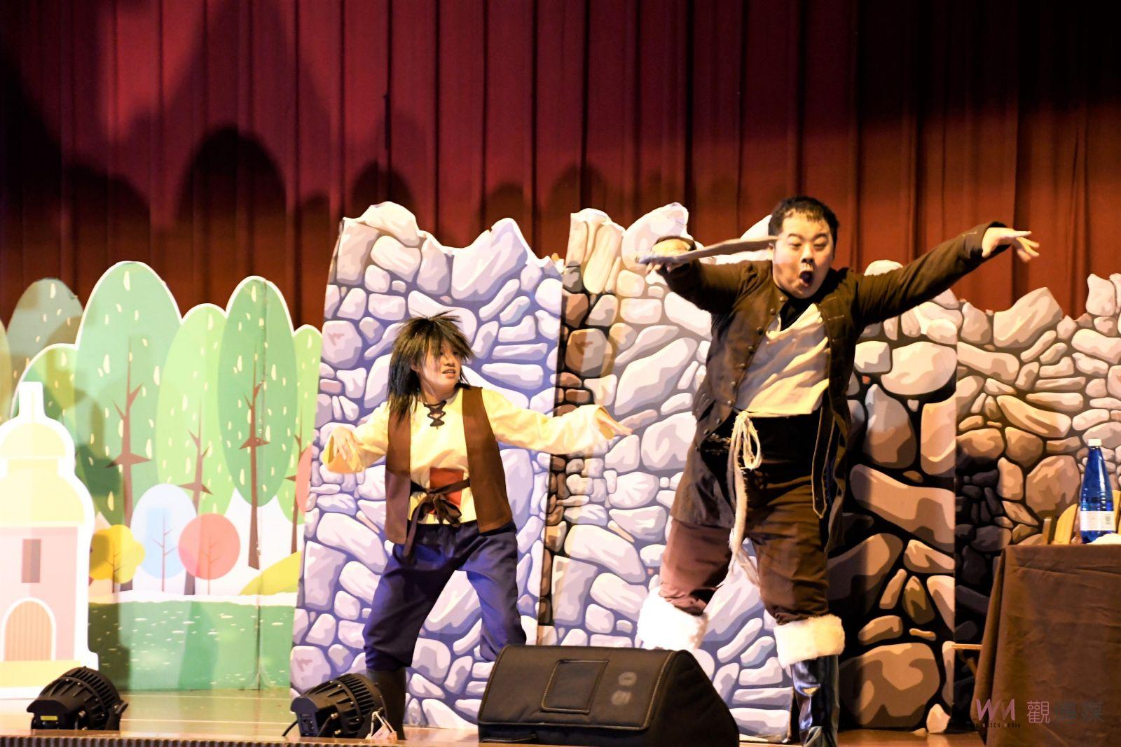 今日演出《魔鬼的三根金頭髮》,劇情描述很久很久以前,一個臉上有著權杖胎記的男孩里奧,傳說長大後會娶公主,聽到這個消息的國王非常生氣,為了不讓這位小男孩娶公主,國王欺騙里奧去尋得魔鬼的三根金頭髮來破除公主的詛咒,究竟善良的里奧能順利取得魔鬼的三根金頭髮嗎?故事內容希望告訴各位小朋友,成為一個善良的人,善良的本心終究會在過程中受到諸多人的保護及眷顧。