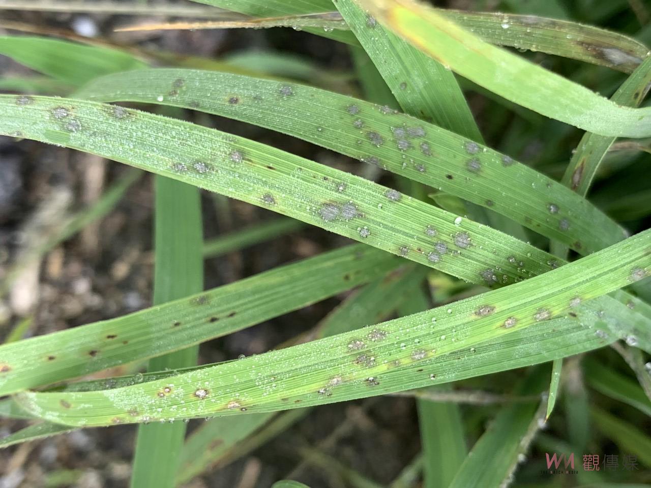 ▲臺中區農業改良場田間調查發現,部分田區的秧砧稻苗葉片已出現葉稻熱病病斑,氣候條件適合水稻葉稻熱病發生與蔓延,籲請農民及時防治。