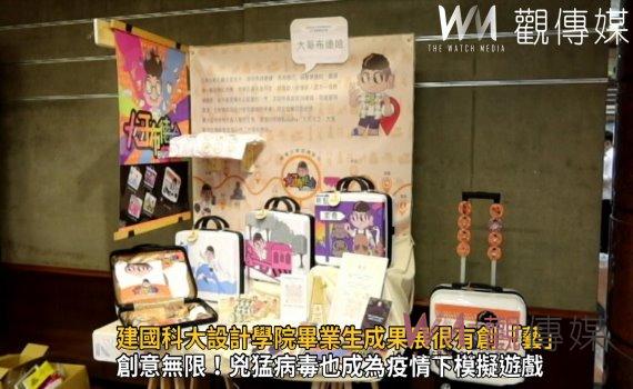 (彰化新聞)【記者陳雅芳/彰化報導】「疫」中有藝!疫情持續延燒,嚴重影響民眾的生活及生命,也造成產業受到極大衝擊,建國科技大學設計學院四系學生發表畢業專題製作,以兇猛病毒疫情做為背景進行創意發想,有結合酒精、泡泡、紫外線殺菌、烘乾等四合一防神器;還有病毒模擬遊戲,作品更在臺北國際發明展中獲獎。