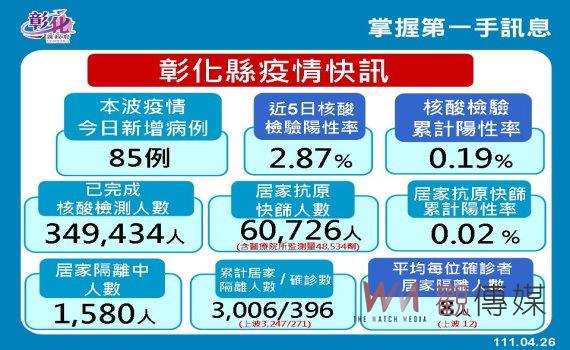 ▲彰化縣單日新增85例確診個案,衛生局提醒大家,仍要落實防疫,勤洗手、戴口罩。