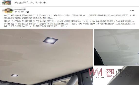 民眾甚至貼出天花板漏水滴水的影片及相關照片,質疑新完工的歸仁文化中心施工品質不良,要求市府驗收時可得好好把關。