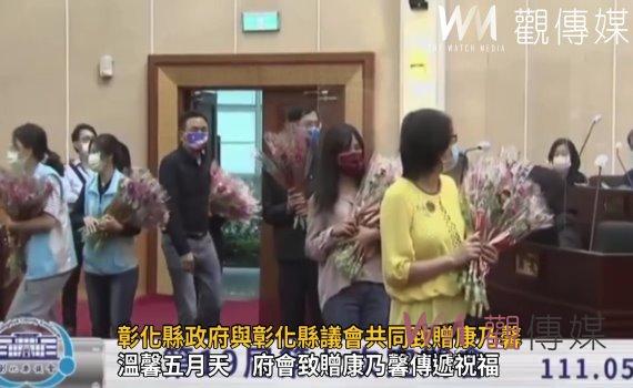 (彰化新聞)【記者陳雅芳/彰化報導】彰化縣議會第19屆第7次定期會今(2)日舉行開幕典禮、議案報告,由於母親節即將到來,由縣長王惠美與議長謝典林分別致贈在場者康乃馨,並預祝天下的媽媽母親節快樂外,也協助促銷縣產花卉。