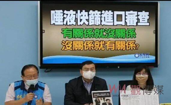 國民黨立院黨團總召曾銘宗表示,福又達進口韓國唾液式篩劑,被發現該公司是高端第二大股東,福又達創辦人陳燦堅是董事法人代表,並擔任高端副董兼總經理,國民黨團高度質疑衛福部刻意護航。近期疫情非常嚴峻,4月30確診人數高達15,000多人,在5月1日國內確診人數高達16,000多人時,陳時中跑去台中參加牙醫公會40周年晚宴,面對媒體詢問是否會有群聚疑慮時,陳時中表明沒有這個問題;國民黨團強烈譴責陳時中,在疫情嚴峻當下,還在跑行程,為他可能參選在鋪路。