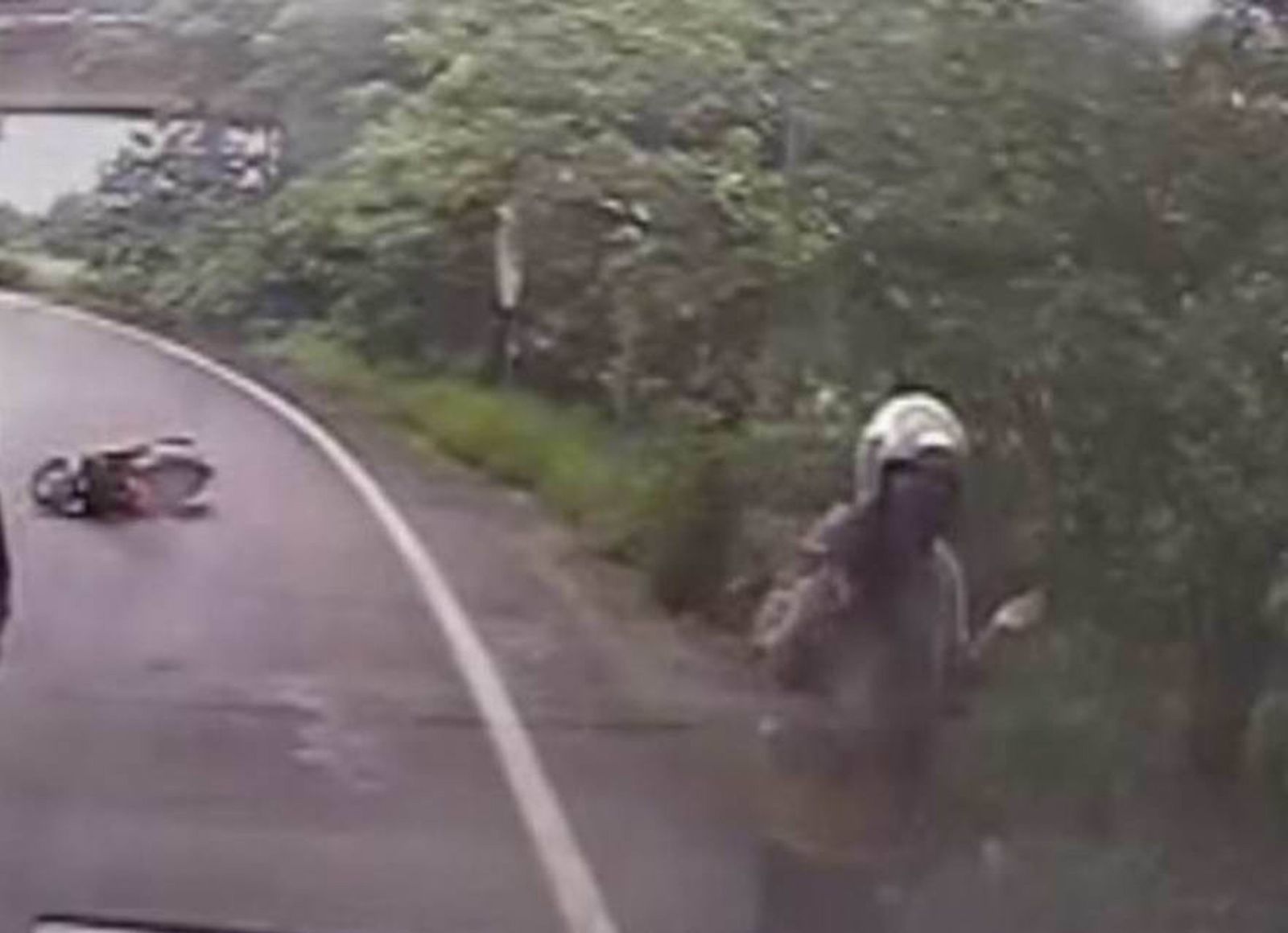這起流浪狗害摔車事件發生在今(15)日上午8點左右,林姓女子摔車倒地後,機車毀損,林女全身髒汙爬起,手腳多處擦傷,站在路邊待援。一名薛姓民眾經過見義勇為指揮交通避免二次傷害,林女向他表示,是被一隻突然竄出的流浪狗給嚇到摔車,實在太恐怖了,肇事的毛小孩則不見蹤影。