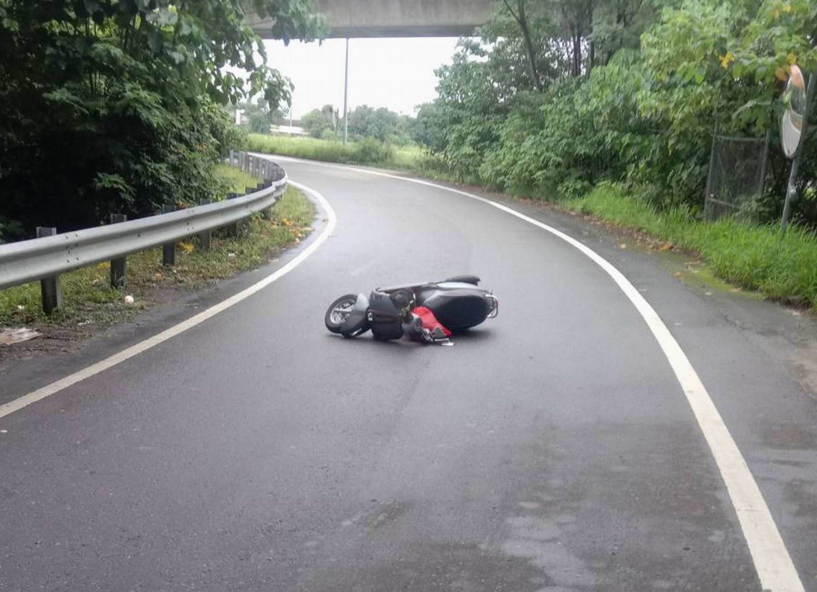 ▲這起流浪狗害摔車事件發生在今(15)日上午8點左右,林姓女子摔車倒地後,機車毀損,林女全身髒汙爬起,手腳多處擦傷。