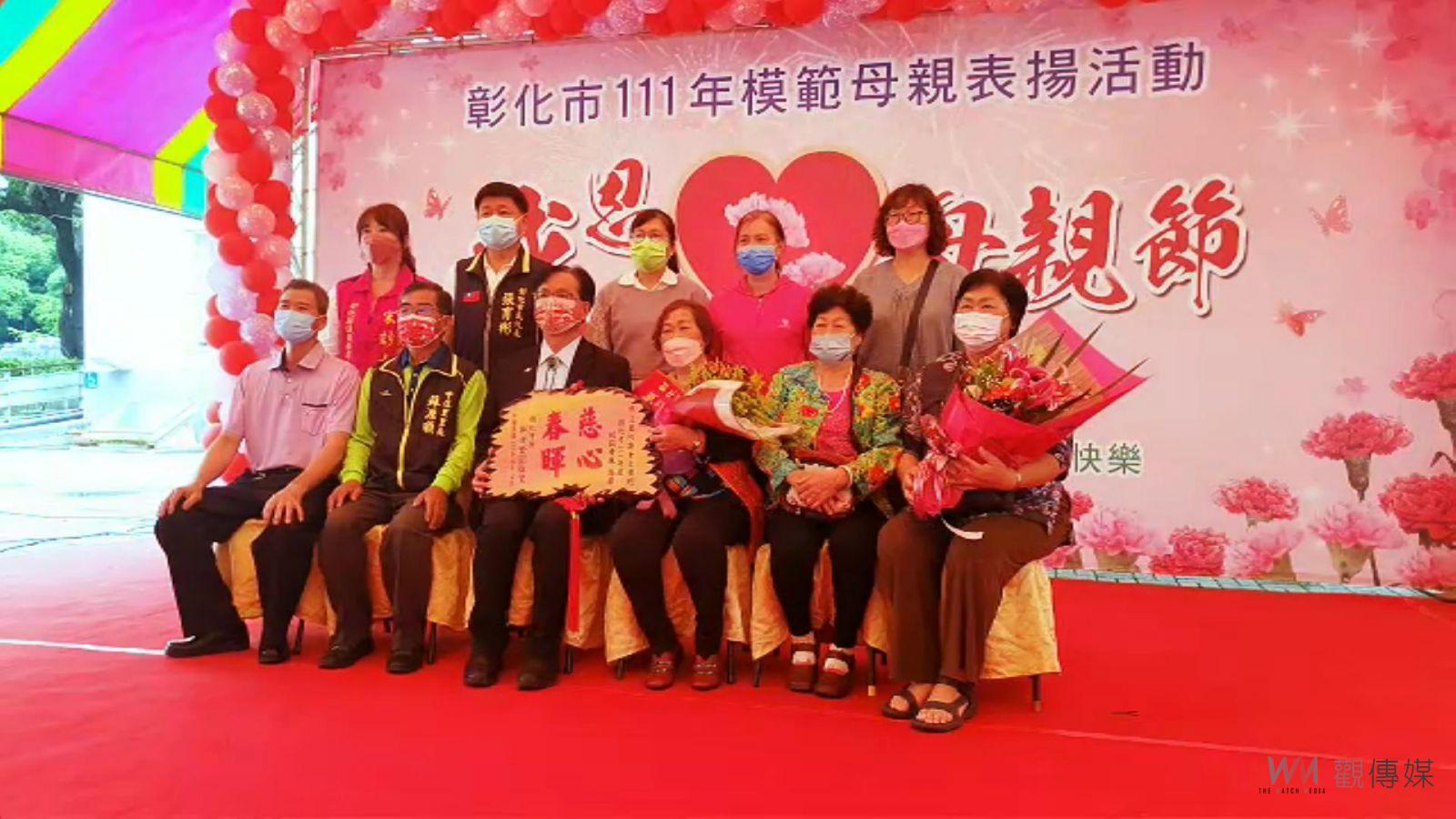 ▲彰化市111年表揚模範母親大會首度戶外舉行,林世賢強調:天下每位媽媽都是「勇媽」。