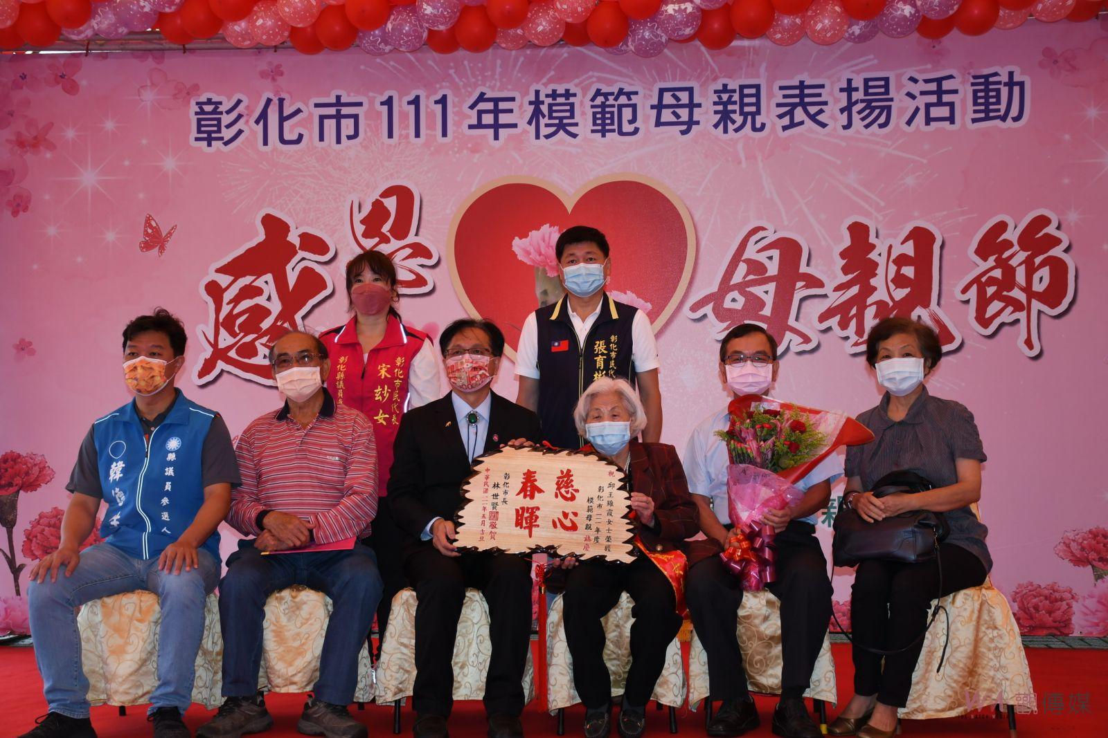 ▲彰化市111年表揚模範母親大會首度戶外舉行,林世賢強調:天下每位媽媽都是「勇媽」。